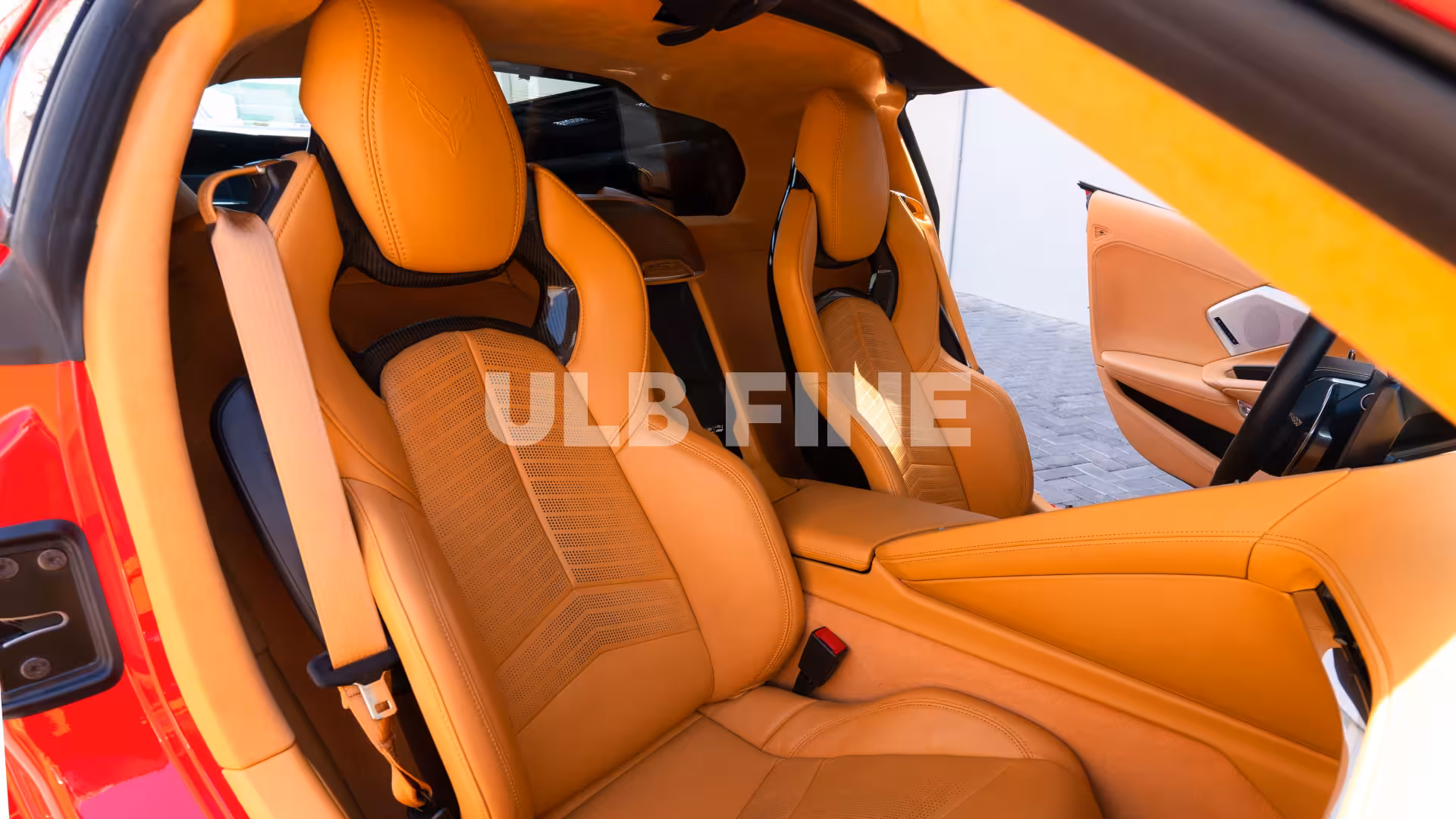 Rent the red Chevrolet Corvette C8 2021 from ULB Fine – Rent a Car and experience the thrill of true American sports car excellence.